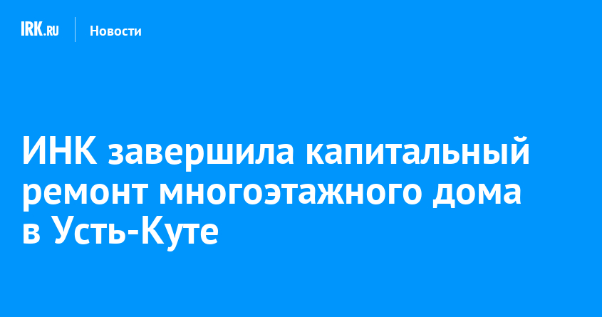 Иркутская нефтяная компания (ИНК) завершила капитальный ремонт многоэтажного жилого дома в микрорайоне Лена города Усть-Кута. Пятиэтажное здание, построенное на улице Реброва-Денисова около 40 лет назад в рамках БАМовской застройки, где проживает свыше 200 человек, находилось в неудовлетворительном состоянии.