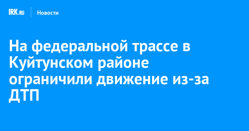 В Куйтунском районе на федеральной трассе Р-255 «Сибирь» ограничили движение из-за аварии. Она произошла на 1538 километре, сообщили в пресс-службе Госавтоинспекции Иркутской области.