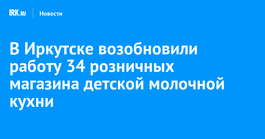 В Иркутске возобновили работу 34 розничных магазина детской молочной кухни. Они расположены на Розы Люксембург, Чехова, Баумана, Лермонтова, Мухиной, Муравьева, Звездинской и других улицах, сообщается в телеграм-канале «Комбината питания Иркутска».
