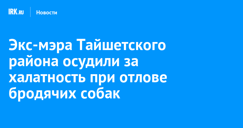 Суд вынес приговор бывшему мэру Тайшетского района за халатность при организации отлова и содержания безнадзорных животных. Его оштрафовали на 100 тысяч рублей, сообщили в пресс-службах СУ СКР по Иркутской области и прокуратуры региона. По информации источника, речь идет об Александре Величко.