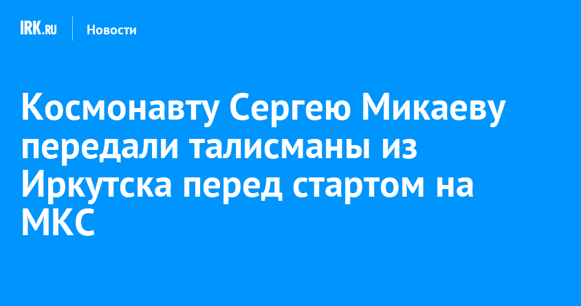 Около 17:27 27 ноября с Байконура стартует корабль «Союз МС-28» с международным экипажем, в состав которого входит иркутянин, первый бортинженер Сергей Микаев. Перед полетом на МКС земляки передали ему специально изготовленные талисманы — шевроны с вышитым бабром и пожеланиями удачи, сообщили в пресс-службе администрации города.