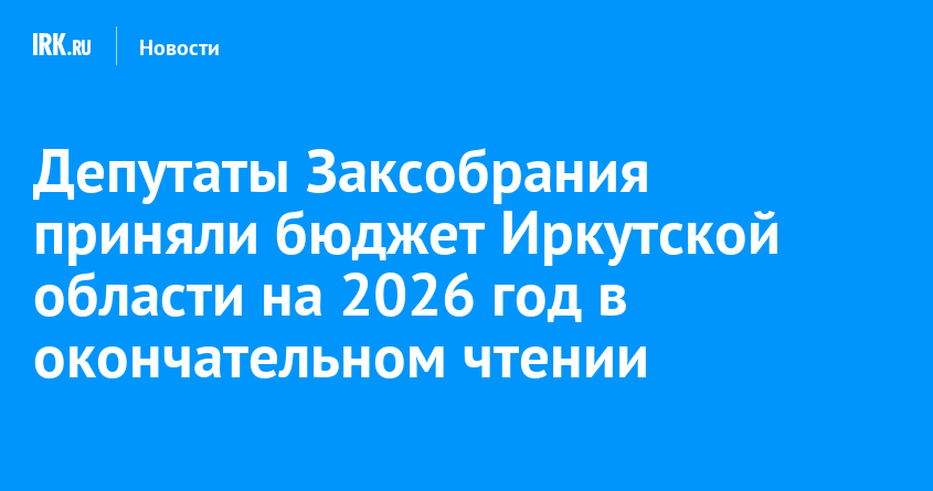 29 ноября на сессии Законодательного собрания депутаты приняли бюджет Иркутской области на 2026 год и плановый период 2027-2028 годов во втором и третьем, окончательном, чтениях. В главный финансовый документ внесли поправки по итогам распределения межбюджетных трансфертов после принятия федерального бюджета: объем доходов и расходов на 2026 год с учетом федеральных средств вырос на три миллиарда рублей.
