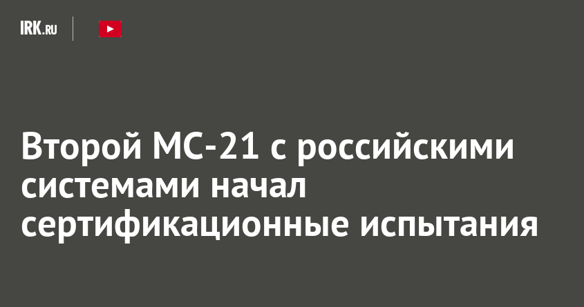 Ранее второй опытный образец российского самолета МС-21 с отечественными комплектующими совершил беспосадочный перелет из Иркутска в Жуковский. Полет длился 6 часов 15 минут и прошел в штатном режиме на высоте около 11 тысяч метров и скоростью 800 километров в час. Сертификационные испытания отечественного самолета МС-21 планируют завершить в конце 2026 года.