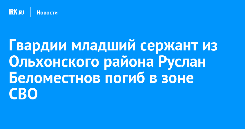 Старший механик-водитель, гвардии младший сержант Руслан Беломестнов из Ольхонского района погиб в ходе специальной военной операции. Ему было 25 лет, сообщил в телеграм-канале мэр МО Андрей Тыхеев.
