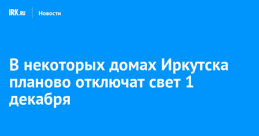 На 1 декабря в Иркутске запланирован ряд работ, в связи с которыми в некоторых домах отключат электроснабжение. Это затронет здания в Правобережном, Октябрьском, Свердловском и Ленинском округах, сообщается в телеграм-канале «Свет38».