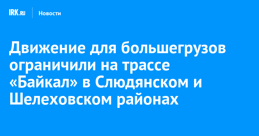 Утром 2 декабря на федеральной трассе «Байкал» в Шелеховском и Слюдянском районе ограничили движение для большегрузного транспорта. Об этом сообщили в пресс-службе Упрдор «Прибайкалье».