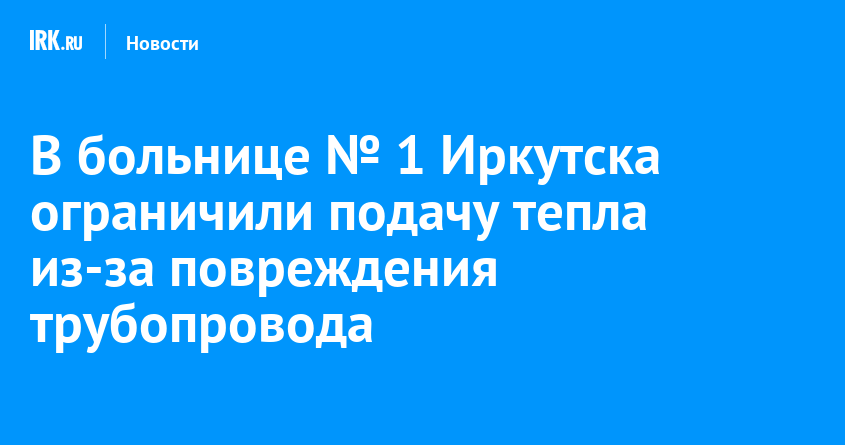 В Иркутске теплоэнергетики ликвидируют последствия повреждения на ветхом трубопроводе в районе городской больницы № 1. На время срочного ремонта в учреждении ограничили горячее водоснабжение и отопление, сообщается в телеграм-канале оператора теплосетей Иркутска.