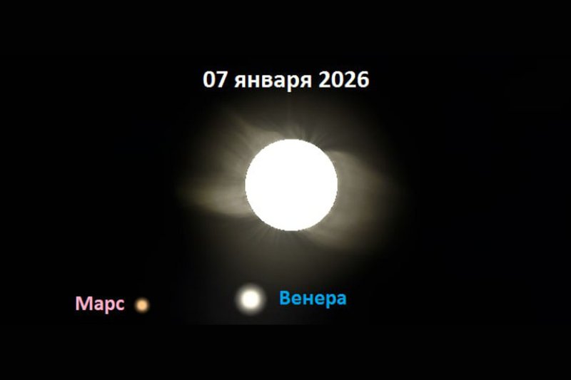 Расчеты показывают, что в рождественскую ночь с 6 на 7 января 2026 года произойдет редкое астрономическое событие — одновременно на небе с Солнцем соединятся Венера и Марс. В следующий раз подобное явление ожидается только в 23 веке, сообщается на сайте лаборатории солнечной астрономии ИКИ и ИСЗФ СО РАН.