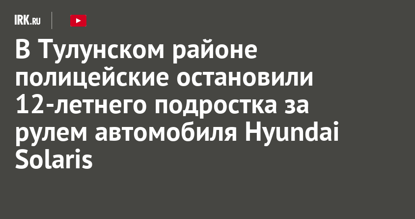 В поселке 4-е Отделение Госселекстанции станции Тулунского района сотрудники ДПС заметили автомобиль Hyundai Solaris, водитель которого начал вести себя подозрительно при виде патруля. После сигнала, поданного через громкоговорящее устройство, автомобиль остановился. За рулем оказался 12-летний школьник. На пассажирском сиденье находился его отец с признаками алкогольного опьянения.