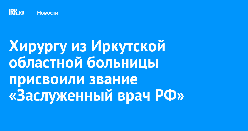 Президент России присвоил сотруднику Иркутской ордена «Знак Почета» областной клинической больницы Александру Панасюку почетное звание «Заслуженный врач Российской Федерации». Специалиста поощрили за заслуги в области здравоохранения и многолетнюю добросовестную работу, сообщил в своем телеграм-канале губернатор Иркутской области Игорь Кобзев.