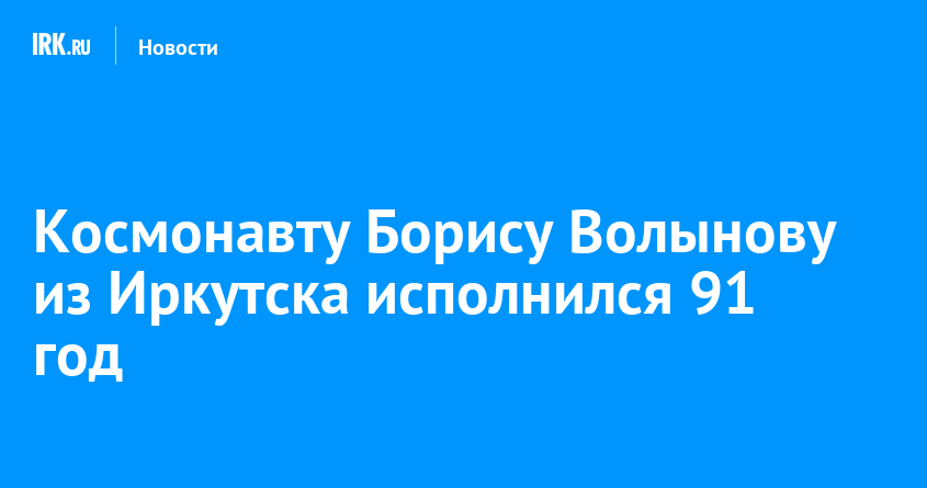 19 декабря 2025 года 91 год исполнился дважды Герою СССР, космонавту с позывным Байкал и иркутянину Борису Волынову, сообщил в своем телеграм-канале губернатор Иркутской области Игорь Кобзев. Глава Приангарья передал поздравления уроженцу Иркутска.