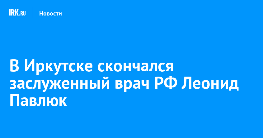Заслуженный врач РФ, один из ведущих ангиохирургов Восточной Сибири, бывший главный врач городской клинической больницы №1, экс-депутат думы Иркутска Леонид Павлюк скончался на 68-м году жизни после продолжительной болезни. Мэр Руслан Болотов выразил глубокие соболезнования семье, друзьям и коллегам мужчины.