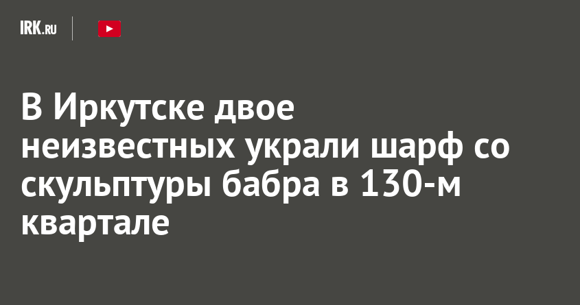 Двое неизвестных мужчин сняли шарф со скульптуры бабра, расположенной в 130-м квартале Иркутска. Действия злоумышленников попали на записи камер видеонаблюдения.
