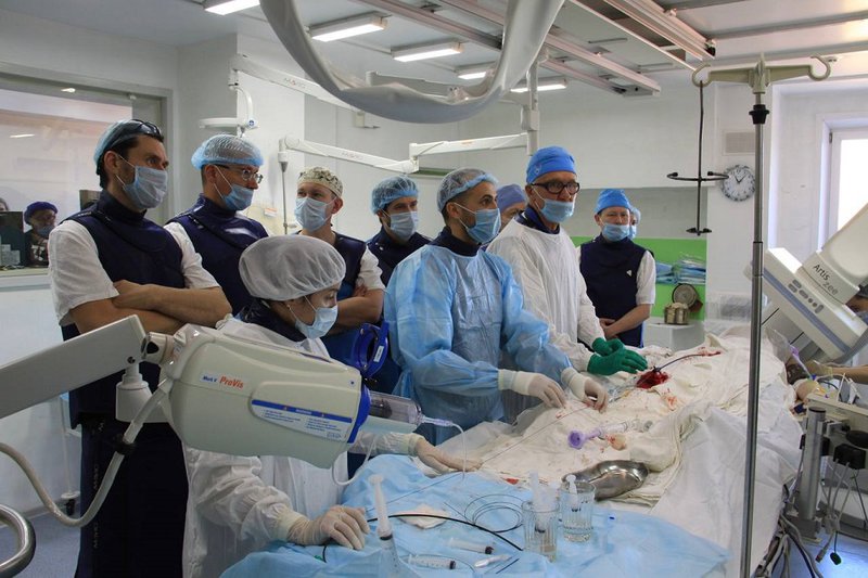Вместе с приглашенным специалистом из клинического центра имени академика Е. Н. Мешалкина (Новосибирск) Алексеем Войтовым иркутские врачи выполнили коррекцию таких сложных состояний, как критическое сужение аорты и дефекты межжелудочковой перегородки. Операции проводились через точечные проколы, без обширных разрезов.