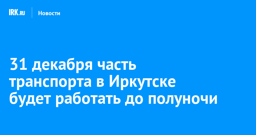 Работу некоторого транспорта продлят до полуночи. Это касается автобусов № 6 «Центральный Рынок — поселок Жилкино», № 8 «Ново-Иркутская ТЭЦ — микрорайон Зеленый», № 28р «Центральный Рынок — Авиазавод», № 33 «Центральный Рынок — станция Батарейная», № 37 «Центральный Рынок — Ново-Ленино», № 67 «Микрорайон Первомайский — микрорайон Топкинский».