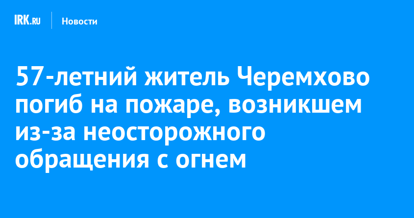Вечером 2 января произошел пожар в одной из квартир двухквартирного дома в переулке Зерновом в Черемхово. Погиб 57-летний мужчина. Предварительной причиной возгорания спасатели называют неосторожное обращение с огнем. Об этом сообщили в пресс-службе ГУ МЧС России по Иркутской области.