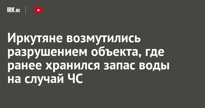 «Неизвестные разносят стратегический объект «Кайские резервуары». На этом месте никогда ничего нельзя было строить, так как здесь находились запасы воды на случай ЧС! Даже школу для детей не разрешали строить. Никаких паспортов объекта нет, но работы ведутся каждый день. Местные жители говорят, что планируется стройка многоэтажки. Почему и кто лишает нас стратегического объекта?» — написал иркутянин Михаил.