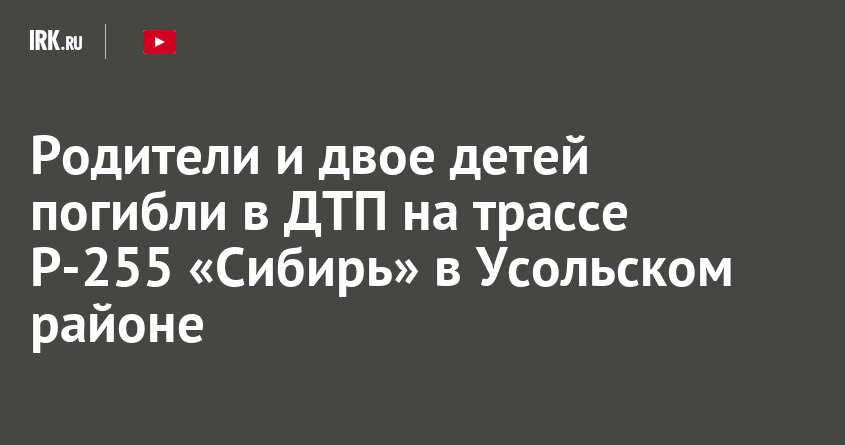 Днем 8 января на федеральной трассе вблизи поселка Новомальтинск в Усольском районе произошла авария. В результате погибли четыре человека, сообщает пресс-служба Госавтоинспекции Иркутской области. Двое из них — дети.