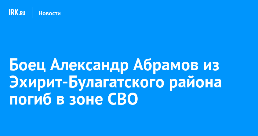 Военнослужащий из Эхирит-Булагатского района Александр Абрамов погиб в зоне проведения специальной военной операции. Бойцу был 41 год, сообщил в телеграм-канале мэр МО Геннадий Осодоев.