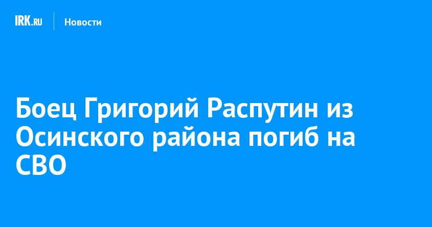 Военнослужащий Григорий Распутин из Осинского района погиб в ходе проведения специальной военной операции. Ему было 28 лет, сообщается в соцсетях администрации МО.