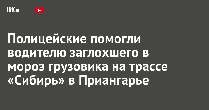 Инспекторы ДПС помогли водителю грузовика Dongfeng HINO, ехавшего из Красноярска в Иркутск. Машина мужчины заглохла на 1265-м километре федеральной трассы Р-255 «Сибирь» Нижнеудинского района из-за промерзания топливной системы. Сильные морозы -35 градусов не позволили автомобилисту справиться с проблемой без специального оборудования и помощи, сообщили в Госавтоинспекции региона.