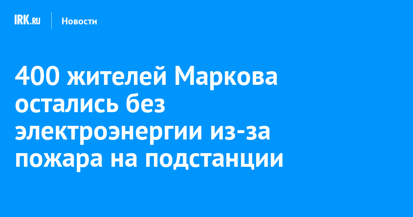 Ночью 20 января в Маркова Иркутского округа произошел пожар на трансформаторной подстанции. Без света остаются около 400 человек. Это жители микрорайона Парк Пушкина, дачного поселка «Ромашка» и коттеджного поселка «Варежки». На месте работают энергетики.