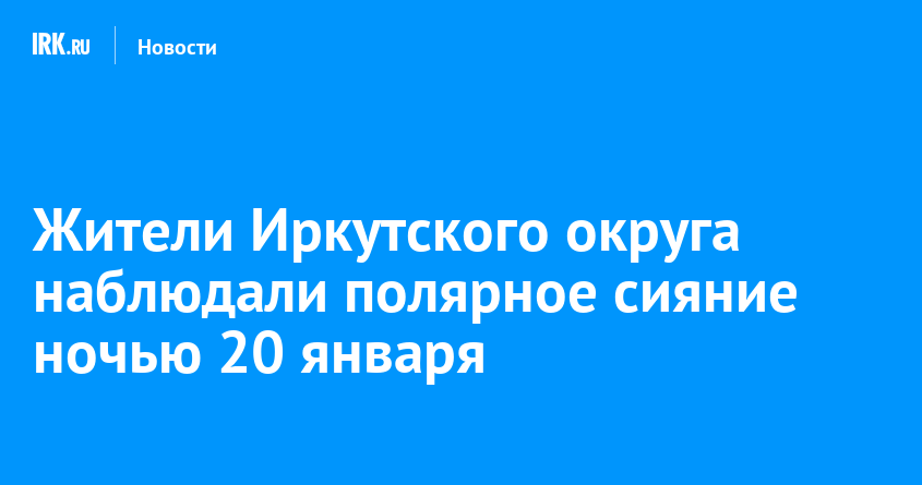 Ночью 20 января 2026 года жители Иркутского округа наблюдали полярное сияние. Фотографиями явления они поделились в телеграм-группе «Полярные сияния» и других каналах. Также сияние зафиксировали в Якутии, Бурятии, Забайкальском крае и Тюменской области.