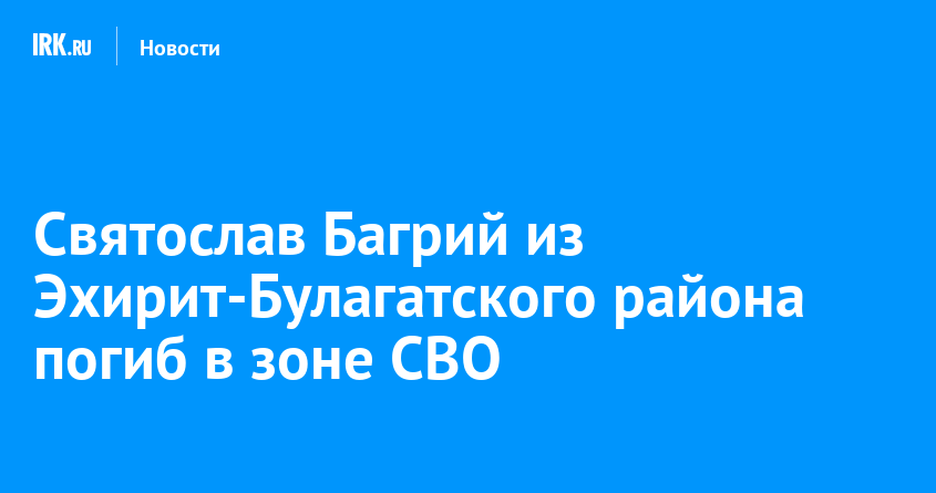 Стрелок из Эхирит-Булагатского района Святослав Багрий погиб при выполнении боевой задачи на территории населенного пункта Крутой Яр. У мужчины осталось трое детей, сообщил в своем телеграм-канале мэр МО Геннадий Осодоев.