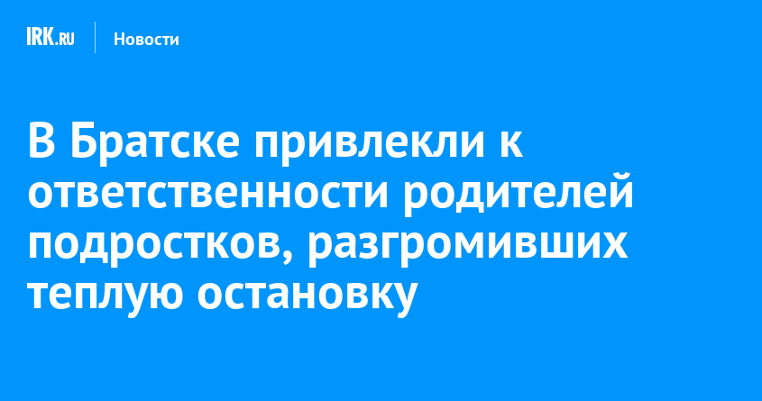 В Братске к административной ответственности привлекли родителей подростков, устроивших погром в теплом остановочном павильоне на проспекте Ленина. Инцидент произошел 13 января, сообщили в телеграм-канале «МВД Братск».