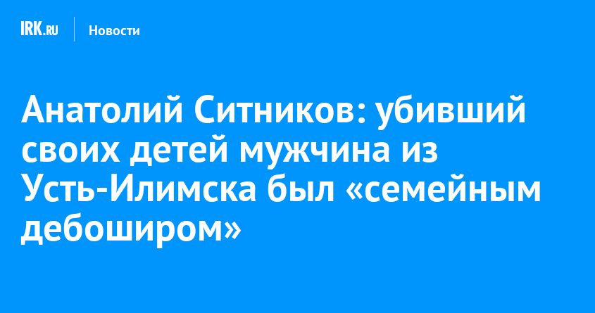 21 января во время пресс-конференции руководитель СУ СК России по Иркутской области Анатолий Ситников прокомментировал инцидент в Усть-Илимске, где погибли двое детей. Тела 8-летнего мальчика и 6-летней девочки с признаками насильственной смерти обнаружили 3 января. Подозреваемый в убийстве отец детей после совершения преступления нанес себе ранения ножом, от которых умер в больнице.