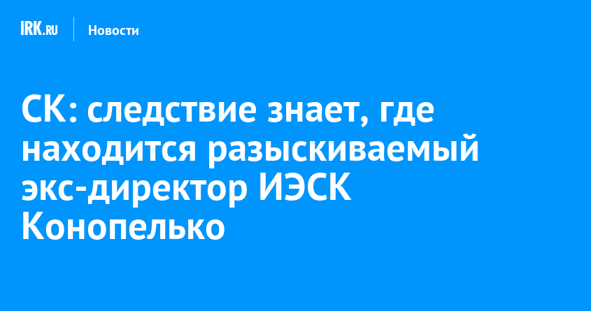 Следователи установили местонахождение бывшего генерального директора Иркутской электросетевой компании Дмитрия Конопелько, находящегося в международном розыске. Об этом на пресс-конференции сообщил заместитель руководителя СУ СКР по Иркутской области Ринат Ямалиев. Он также подчеркнул, что расследование уголовного дела о неподключении жилых домов к электросетям в Иркутском округе находится в завершающей стадии.