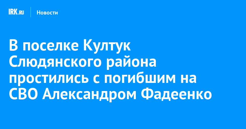 20 января жители поселка Култук Слюдянского района простились с земляком Александром Фадеенко, погибшим в зоне проведения СВО. Бойцу было 40 лет. Об этом в своем телеграм-канале сообщил глава Слюдянки Андрей Должиков.