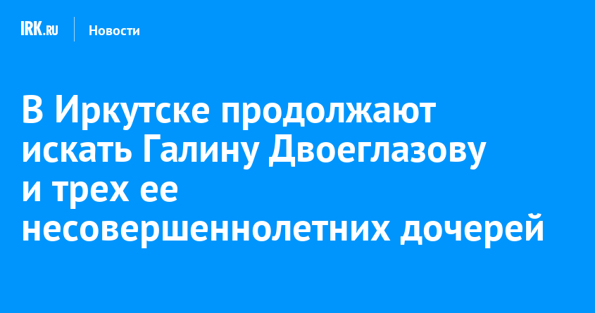 Полицейские ищут 38-летнюю Галину Двоеглазову и трех ее детей. Сожитель женщины обратился к правоохранителям и рассказал, что 14 января иркутянка с тремя дочерьми ушла из дома и не вернулась, сообщает пресс-служба ГУ МВД России по Иркутской области.