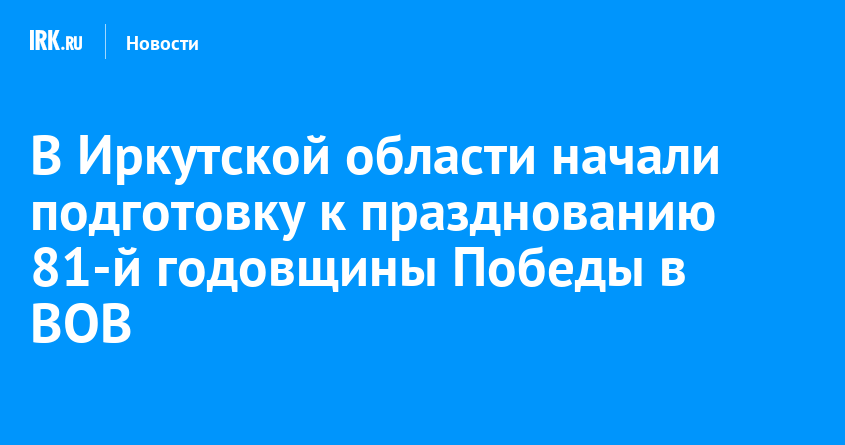 Иркутская область приступила к подготовке мероприятий, посвященных 81-й годовщине Победы в Великой Отечественной войне. Предварительный план на 2026 год включает более 90 пунктов. Среди них — юбилеи воинских частей, организация торжественного шествия подразделений Иркутского местного гарнизона и других силовых структур, проведение «Бессмертного полка», а также блок культурно-массовых, спортивных событий и мероприятий патриотической направленности. Документ будут дополнять, сообщили в пресс-службе правительства Приангарья.