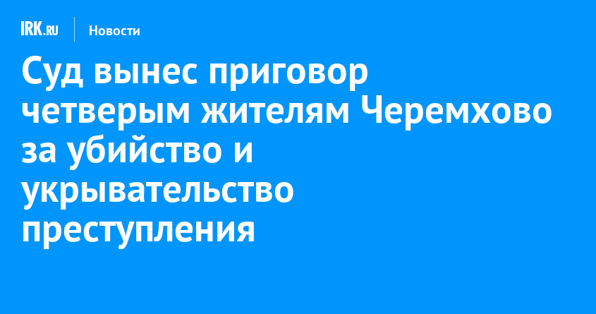 Иркутский областной суд вынес приговор по уголовному делу в отношении 38-летнего мужчины и 33-летней жительницы Черемхово. Их признали виновными в убийстве и укрывательстве преступления, сообщили в пресс-службе прокуратуры Иркутской области.