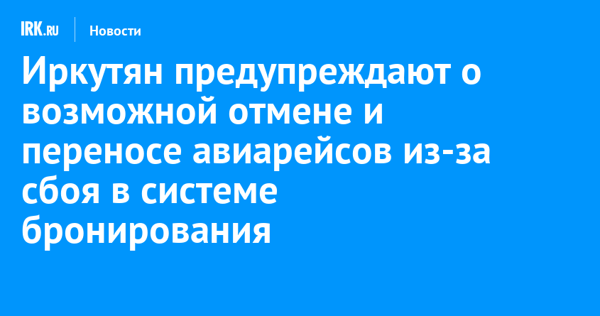 26 января из-за глобального сбоя в системе бронирования и регистрации Astra (Сирена-Трэвел) произошло нарушение в работе авиаперевозчиков, сообщили в телеграм-канале «Аэропорт Иркутск». В связи с этим возможны изменения в расписании рейсов: перенос времени вылета и отмена отдельных рейсов по всей маршрутной сети. Иркутский аэропорт, как и многие другие в стране, перешел на усиленный режим работы.