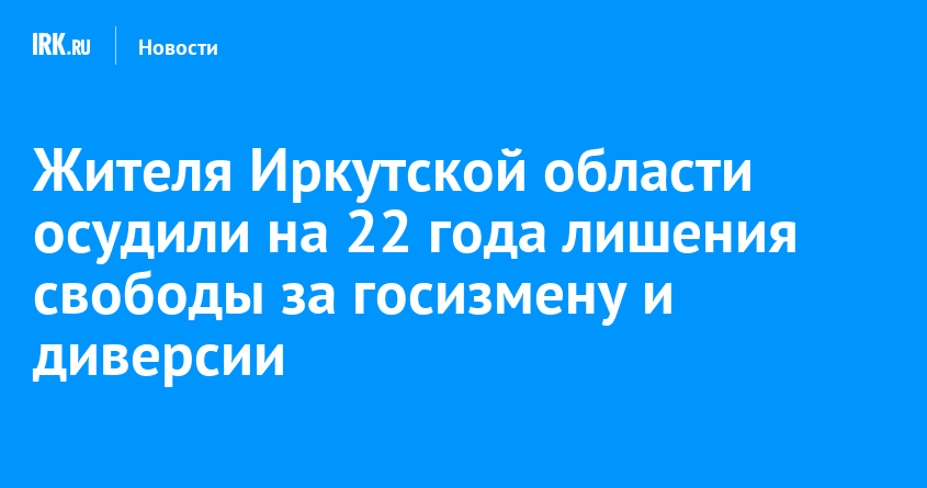 Окружной военный суд приговорил жителя Иркутской области к 22 годам лишения свободы за государственную измену, диверсии, а также приготовление к участию в деятельности террористической организации. Пять лет он будет отбывать в тюрьме, а оставшуюся часть наказания в колонии строгого режима. Также ему назначили два года ограничения свободы, сообщили в пресс-службе Второго Восточного окружного военного суда.