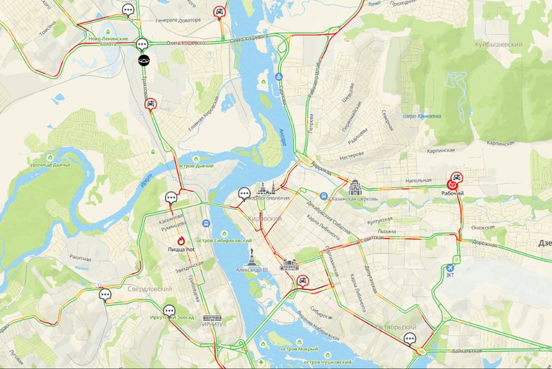 Пробки в Иркутске. Скриншот с сервиса 2ГИС