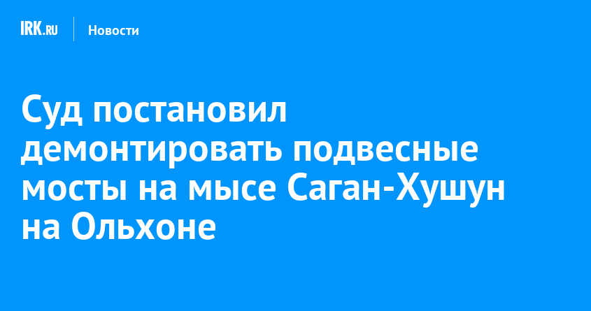 Ольхонский районный суд удовлетворил иск прокуратуры и обязал ФГБУ «Заповедное Прибайкалье» убрать самовольно построенные подвесные мосты на мысе Саган-Хушун на острове Ольхон. Решение приняли после проверки, проведенной надзорным органом.