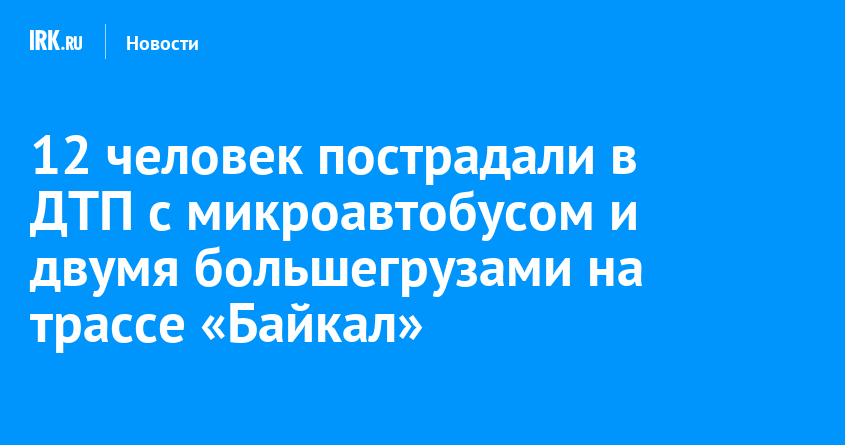 27 января на 124-м километре трассы Р-258 «Байкал» в районе села Мангутай Слюдянского района произошло столкновение маршрутного микроавтобуса и двух большегрузов. В больницу доставили 12 человек. Это пассажиры и водитель общественного транспорта. Мужчина находится в тяжелом состоянии, сообщили в пресс-службах ГУ МВД, СУ СКР по региону и прокуратуры Иркутской области.