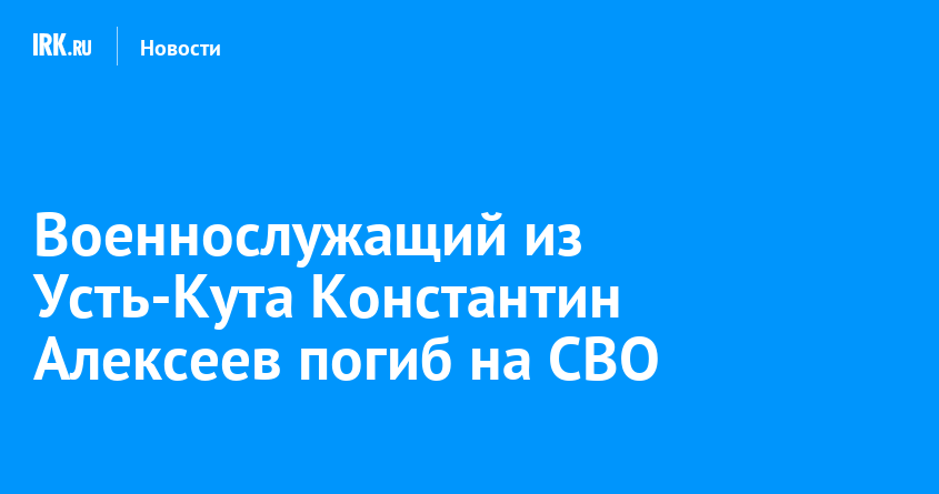 Военнослужащий из Усть-Кута Константин Алексеев погиб при выполнении боевой задачи в ходе проведения специальной военной операции. Ему было 27 лет, сообщили в соцсетях администрации города.
