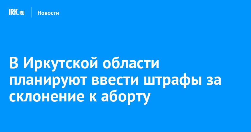 Депутаты Законодательного собрания Иркутской области предложили ввести административную ответственность за склонение к искусственному прерыванию беременности. Для должностных лиц административный штраф составит от 5 до 10 тысяч рублей, для юридических — от 30 до 50 тысяч рублей. Законопроект рассмотрят на 33-й сессии регионального парламента 28 января.