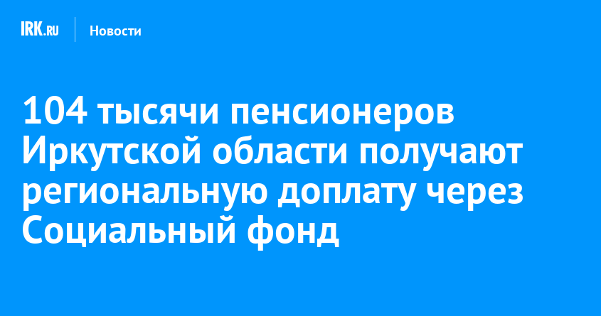 С начала 2026 года Отделение Социального фонда России по Иркутской области осуществляет выплаты региональной социальной доплаты к пенсии. Финансовую поддержку в настоящее время получают более 104 тысяч жителей региона, чей доход ниже прожиточного минимума, сообщили в пресс-службе Социального фонда России.