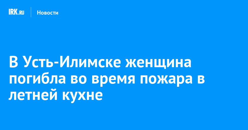Женщина погибла во время пожара, который произошел днем 27 января в летней кухне в частном секторе на улице Интернационалистов в Усть-Илимске. К моменту прибытия пожарных подразделений хозяйственную постройку полностью охватил огонь, сообщает пресс-служба ГУ МЧС России по Иркутской области.