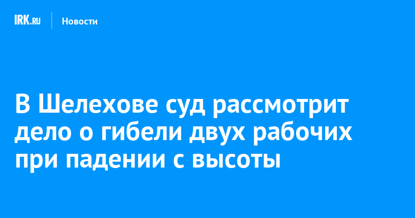 В результате люлька с людьми сорвалась со стрелы и рухнула с высоты более 7,8 метров на землю. Двух рабочих — 41 и 45 лет — с травмами доставили в Шелеховскую районную больницу, где через несколько дней скончались. Уголовное дело с утвержденным обвинительным заключением направили в Шелеховский городской суд для рассмотрения по существу.