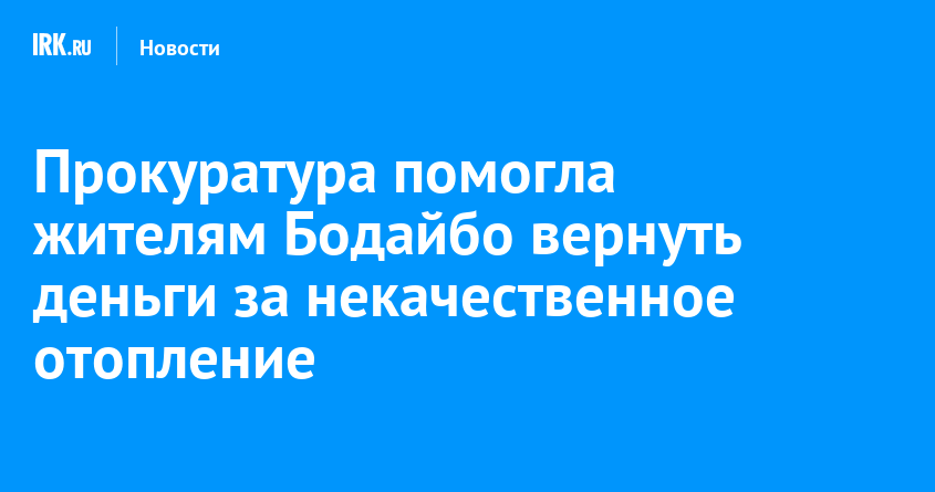 Прокуратура Бодайбо после обращения местных жителей провела проверку исполнения жилищно-коммунального законодательства в городе. Установлено, что 23 декабря 2025 года температура в домах была ниже нормы. Это произошло из-за выхода из строя одного из котлов и неисправности редуктора подачи топлива на резервном котле. Таким образом в этот день теплоснабжающая организация оказывала услуги по отоплению ненадлежащего качества, сообщили в пресс-службе прокуратуры Иркутской области.