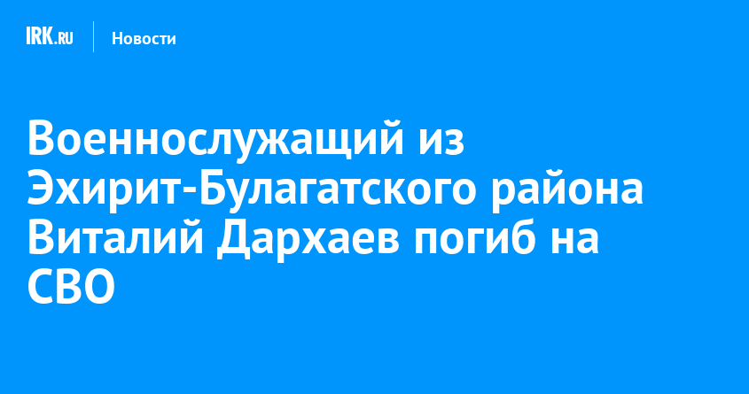 Военнослужащий из Эхирит-Булагатского района Виталий Дархаев погиб в ходе проведения специальной военной операции. Ему было 48 лет, сообщил в телеграм-канале мэр МО Геннадий Осодоев.