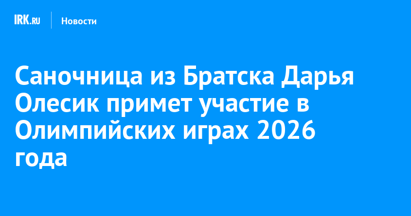 13 российских спортсменов примут участие в зимних Олимпийских играх 2026 года в Милане и Кортина-д’Ампеццо (Италия). В их числе — саночница из Братска Дарья Олесик. Девушка прошла необходимую квалификацию. В этой же дисциплине будет соревноваться Павел Репилов.