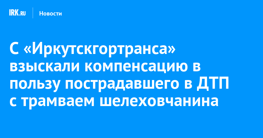 По решению суда МУП «Иркутскгортранс» возместит жителю Шелехова дополнительные расходы, вызванные получением вреда здоровью в результате ДТП с трамваем-спецвагоном. С транспортного предприятия взыскали 720 тысяч рублей. Решение вступило в законную силу, сообщает объединенная пресс-служба судов общей юрисдикции Иркутской области.