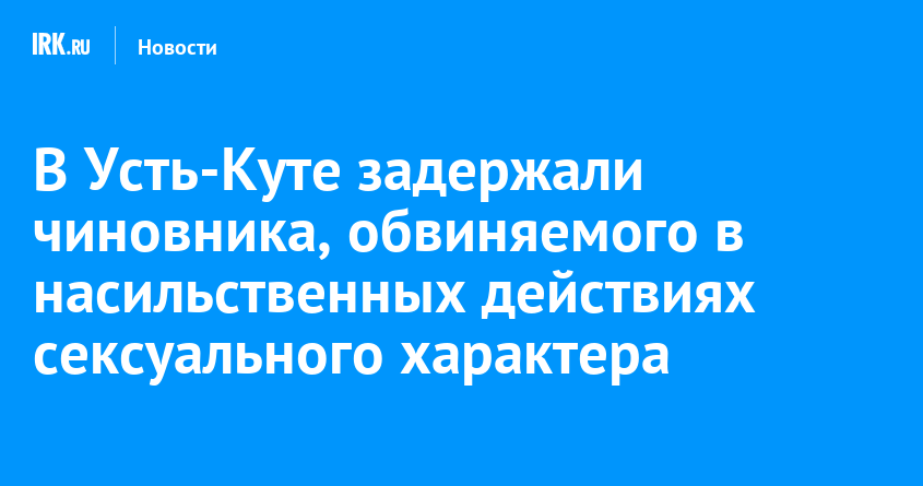 В Усть-Куте задержали председателя комитета по сельскому хозяйству, природным ресурсам и экологии администрации Усть-Кутского муниципального образования. Чиновника обвиняют в совершении преступления, предусмотренного статьей 132 УК РФ «Насильственные действия сексуального характера», сообщает пресс-служба СУ СК России по Иркутской области. По данным источника IRK.ru, речь идет о Михаиле Тышкивском.